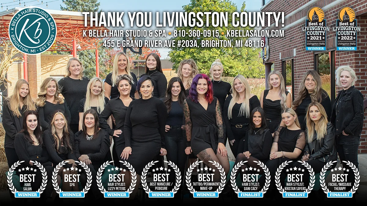 Did you know that four of the five stylists nominated for Best Hair Stylist work at K Bella? You're in excellent hands! If you've heard of us but still haven't booked an appointment, don't hesitate to call us at 810-360-0915. Thank you to all of our fabulous clients, friends, and family for voting for us year after year, we couldn't do any of this without your support!